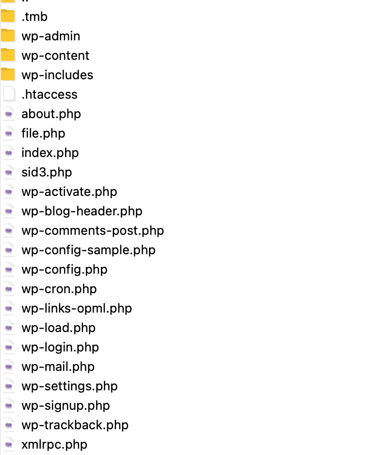 • .tmbフォルダ、about.php / file.php / sid3.php など不審なPHPファイルが存在